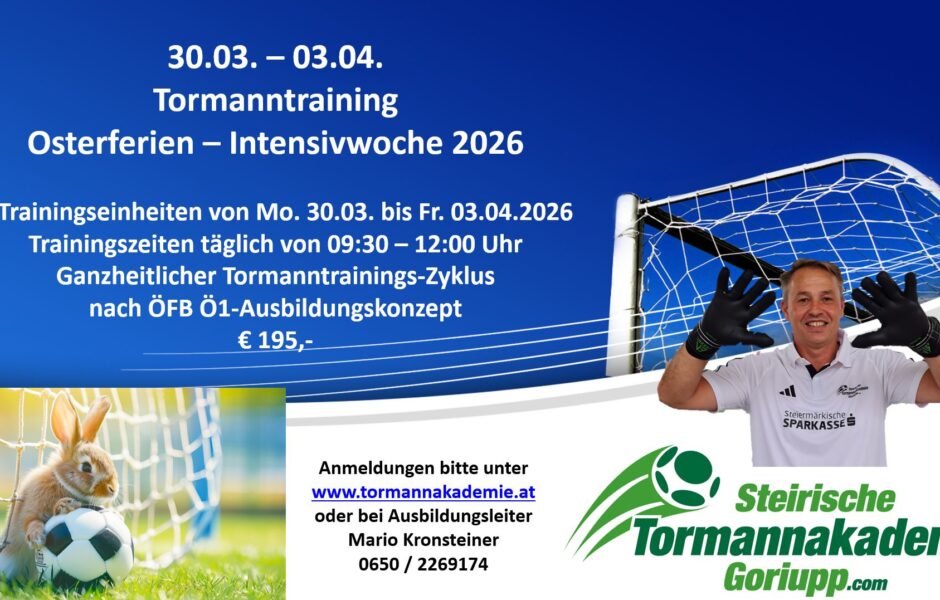 Wir freuen uns, auch 2026 wieder unsere beliebte Osterferien-Tormanntrainings-Intensivwoche (30.03. – 03.04.2026) anbieten zu können!