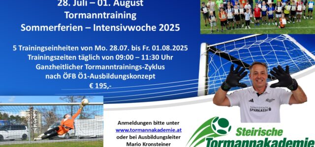 Mach wieder mit bei unserer beliebten Tormanntrainings-Intensiv-Woche in den Osterferien 2026! 5 aufbauende Trainingseinheiten, jeweils am Vormittag (Treffpunkt 09:30 Uhr STFV-Platz),von Montag, 30.03.2026, bis Freitag, 03.04.2026zum Preis von nur € 195,- Ein perfekter Ausbildungs-Zyklus für alle Leistungsstufen! Trainings-Schwerpunkte der Intensiv-Woche:• Tormann-Technik Fangen• Tormann-Technik Werfen & Aufstehen• Tormann-Technik 1:1• Tormann-Technik Ausschießen & Auswerfen• Tormann-Taktik … Anmeldung Osterferien-Tormanntrainings-Intensiv-Woche 2026 weiterlesen